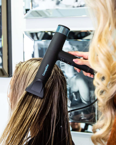 Conceptblue entstand aus einer einfachen Überzeugung: Jede Frau verdient Salon-Ergebnisse – zu Hause, unterwegs, jederzeit. Entwickelt von Haarstylistin Nicole Pluta, die weiß, was Haare brauchen und was Frauen wirklich wollen. Kein Kompromiss zwischen Leistung und Schonung.
